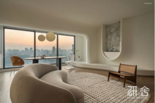 圖/蘭斯 溫州隹聿設計工作室 我們可以從以下這個案例來直觀感受一下??雌饋砗苡袑哟胃械膽铱针娨晧?,內藏玄機,圍塑成了一條迂回動線,串聯(lián)起公共空間和功能區(qū),解決了原有戶型中過道太多,動線不合理的情況,絲滑的圓角詮釋了工藝精湛的內核。