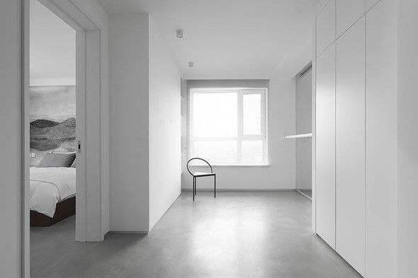 圖/東己壤設計研究室 3、設計的克制 極簡的設計,是不再以形式為設計的出發(fā)點,講究的是設計和實用的科學融合。簡約而不簡單,是設計師經(jīng)過深入了解居住者的生活習慣和愛好,來去繁從簡,合理規(guī)劃而來的。其強調空間的單純性,去掉多余的裝飾,將空間簡化到光、墻和體,造成空間的流動和不同層次的穿透性。讓居住者在這樣的環(huán)境中得到徹底的放松,以簡潔的居住空間換取專注的精神空間。 比如這個單層4米6的頂樓,設計師采用“隱”和“簡”的處理方式,滿足喜歡簡單生活的年輕屋主。 整體空間大面積留白,家居尺寸不為顯闊綽,而是參考到居住者的使用情況,點到為止。