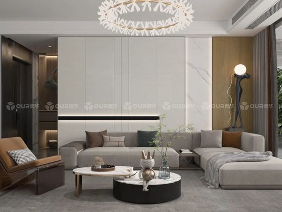 百變的空間 客廳沙發(fā)背景墻以黃栗柚為點(diǎn)睛之筆,輕輕觸摸墻體表面,能夠清晰地感受到木材的紋理,淡淡的暖色調(diào)讓整個(gè)家充滿溫馨。 沙發(fā)背景墻以黃栗柚格柵進(jìn)行拼接過(guò)渡,木與大理石的輝映,克制而平衡。格柵理性的直線在娓娓道來(lái)的節(jié)奏感中,生發(fā)出更多的靈氣,像是身處大自然之中,自由呼吸。 應(yīng)用與優(yōu)勢(shì) 奧華黃栗柚逼真還原了木材細(xì)節(jié),高顏值的同時(shí),耐磨好打理,觸感舒適不覺(jué)冰冷,且防撞、防潮、易清潔,更加適合有老人和孩子的家庭。 3000*880*10mm、2600*880*10mm兩款規(guī)格,黃金比例讓空間更加個(gè)性化、藝術(shù)化,百搭隨心。堅(jiān)實(shí)耐用的奧華黃栗柚,為環(huán)保交出一份令人滿意的答卷。 圖片5