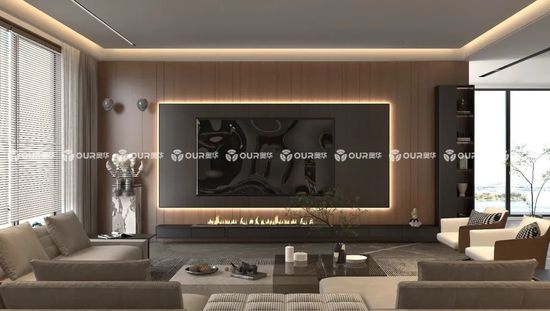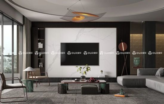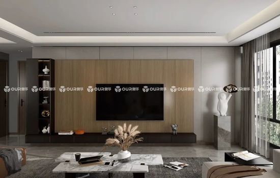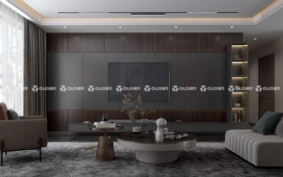 單獨將奧華黑喬木運用在柜子上,與不同暖色系色調電視背景墻搭配更顯精致,陽光的照耀之下還能展現(xiàn)出高級的美感。