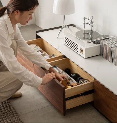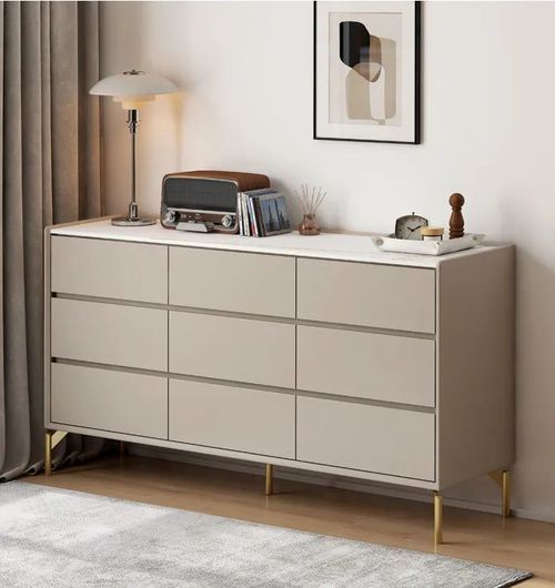 實(shí)木以金屬點(diǎn)綴 舞動(dòng)輕奢 細(xì)節(jié)彰顯格調(diào) 金屬元素往往是輕奢風(fēng)的點(diǎn)睛之筆,運(yùn)用在輕奢風(fēng)家具上亦是如此,黃銅金屬柜腳,在細(xì)節(jié)中提升空間格調(diào)。 低飽和度媞諾·斗柜,北美進(jìn)口鵝掌楸+勞倫白金巖板,加以黃銅金屬腳點(diǎn)綴,如落落大方的姑娘,高顏值收納能手,九抽設(shè)計(jì),分區(qū)儲(chǔ)物,寬敞桌面竟然還可以做電視柜使用呢!