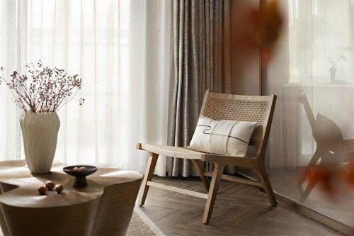 如清晨的一句“早安”,空間的初見,是安于一日三餐的用餐空間。光與這里的一切自然融入,勾勒出對日常生活的珍視。 起居活動空間,與餐廳互為對話。坐在這里,不疾不徐等待清晨到來,再現(xiàn)了留存在我們心里讓人舒適的情境。八點,光的疊加,一切褪去了涼意,也在帶動整個居所質(zhì)樸的觸動。我們用了觸感溫和的材質(zhì)如棉、麻、木,希望給生活帶去溫暖。設(shè)計取自大自然又還予生活本真。