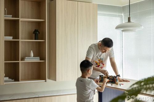 屋主 | 暢哥和驍姐 這其實(shí)是我和我老公結(jié)婚十二年以來(lái)的第一次裝修,我們是五口之家,有一個(gè)六歲的孩子,還有我的父母,三代人一起生活。隨著孩子的成長(zhǎng)我們生活水平的提高,愈發(fā)需要一個(gè)更美好更舒適的生活環(huán)境。 所以在裝修設(shè)計(jì)之初,我就希望可以做到面面俱到,盡量照顧到老人和孩子各自的空間使用。我們期望新家是一個(gè)可以共度親子時(shí)光、共同成長(zhǎng)的地方,既符合溫暖樸素的基調(diào),又能擁有創(chuàng)新與時(shí)尚。我們希望這個(gè)家是開(kāi)放的,優(yōu)美耐看的,久待不膩的。 而最終設(shè)計(jì)師也成功地完成了我的這個(gè)心愿,我們一家人都很滿意。 這是來(lái)自四川成都五口之家的第一次裝修,這是一場(chǎng)打破常規(guī)的以“島”為家的新格局。 舍棄掉一板一眼的客廳,建立屬于自己的新規(guī)則。 讓光影與空間流動(dòng),讓每個(gè)角落都可駐足停留,可動(dòng)可靜,可鹽可甜,有照顧老人活動(dòng)的細(xì)心巧妙,也有適合孩子的開(kāi)心樂(lè)園。 豆蔻島嶼,清新淡雅,以“島”唯佳,久待而不膩。 以“島”居家?活動(dòng)自如 屬于三代人的豆蔻溫馨 Q1 您是出于怎樣的原因選擇設(shè)計(jì)師來(lái)幫自己設(shè)計(jì)房子的呢? 屋主:驍姐 我和我老公工作都很忙,所以需要設(shè)計(jì)師來(lái)幫助我們做裝修設(shè)計(jì)。通過(guò)在網(wǎng)絡(luò)上查看案例,感覺(jué)還是設(shè)計(jì)師比較符合我們的需求,相較于傳統(tǒng)裝修公司,設(shè)計(jì)工作室更有想法也更專業(yè),然后最終選定了榮燁老師。 Q2 您選擇了榮燁老師之后,覺(jué)得在這個(gè)裝修過(guò)程中設(shè)計(jì)師主要是提供了哪些服務(wù)呢? 屋主:驍姐 我覺(jué)得榮燁老師既是一個(gè)引領(lǐng)者,也是一個(gè)好的伙伴。一方面為我們提供了很多新的思路和想法,起到一個(gè)引導(dǎo)的作用;另一方面他也像一個(gè)好朋友,認(rèn)真耐心地傾聽(tīng)我們的需求,設(shè)身處地地為我們考慮,最終讓設(shè)計(jì)成功落地。 Q3 最終裝修完的房子是否達(dá)到您的預(yù)期呢? 屋主:驍姐 是的,我們一家人都非常滿意。 Q4 那么,您當(dāng)初預(yù)想想要實(shí)現(xiàn)的是哪些方面呢? 屋主:驍姐 因?yàn)樾∨笥验_(kāi)始讀小學(xué)了,我們希望家里邊是能夠多一些閱讀少一些電子產(chǎn)品的氛圍,但考慮到老人也會(huì)看電視,所以覺(jué)得客廳最好能成為一個(gè)多功能區(qū)域。最后,經(jīng)過(guò)和榮燁老師的幾輪溝通,我們定下了不以電視為中心的新客廳模式,靈活且有互動(dòng)性,整個(gè)空間好似一個(gè)島嶼,非常有趣。