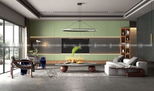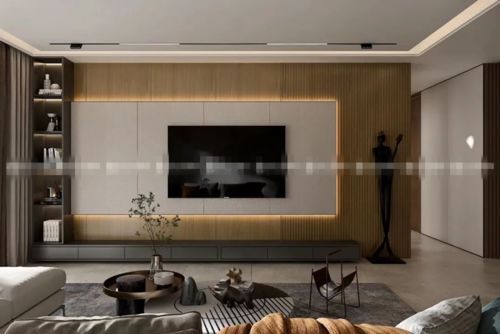 奧華黃栗柚木紋墻品+布拉格皮紋墻品+布魯深灰多功能柜,通過細膩的質感、觸感,傳遞出色彩的純度,營造安穩(wěn)、溫馨的客廳空間感受,滿足現代年輕家庭的生活追求。