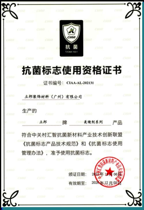產(chǎn)品符合CIAA抗菌標(biāo)志產(chǎn)品技術(shù)規(guī)范,被授予抗菌標(biāo)志使用資格 打造超強(qiáng)防霉彩膠,形成全屋美縫美邊產(chǎn)品體系 立邦美縫劑適用于美化廚房、衛(wèi)生間等場(chǎng)景下的瓷磚縫隙,為了拓寬產(chǎn)品應(yīng)用邊界,真正營(yíng)造健康“無(wú)死角”的家居空間,立邦打造出G30超強(qiáng)防霉彩膠,具備3倍0級(jí)防霉性能,從家人相聚與集中活動(dòng)的客廳、提供優(yōu)質(zhì)睡眠環(huán)境的臥室,到孩子學(xué)習(xí)和成長(zhǎng)的兒童房均可使用,立邦全屋美縫美邊產(chǎn)品體系也由此形成。