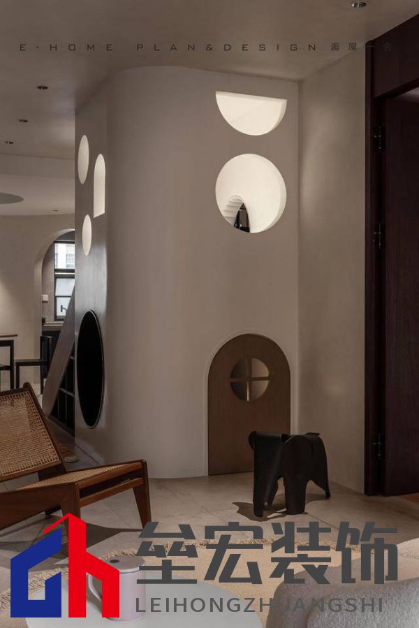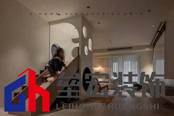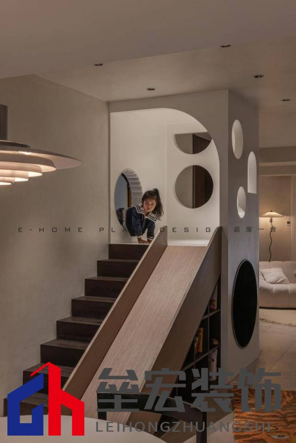 家有“小惡魔”,物歸原位和及時打掃這類事情暫時放一放,一個有序的收納體系,會引導合適的行為習慣。 01. 涂滿小羊皮色 奶酪滑梯的秘密通道 這個家的底色,是暈染著小羊皮感的藝術涂料。溫潤的肌理鋪滿,一座像奶酪一樣的城堡拔地而起。 & 滑梯是這個家重要的“交通樞紐”,它一面通向溫暖的客廳,一面向具有儀式感的餐廚區(qū)域遞進,大人和孩子之間的互動,以及彼此空間的保留、獨立,被滑梯所引領。