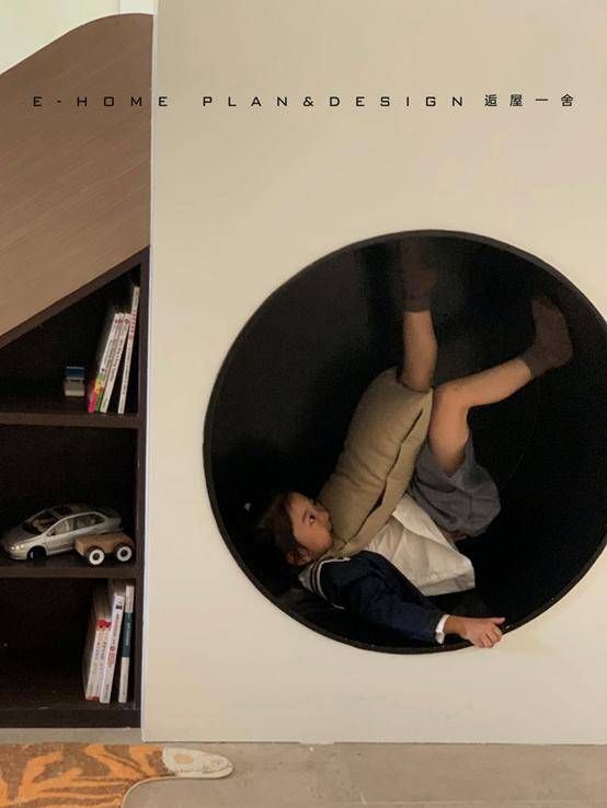 這個客廳沒有什么讓人感覺很銳利的角出現(xiàn),有一種很包容所有家庭成員的感覺 ——周先生和欣媽 滑梯和灸哥的房間僅一墻之隔,布滿圓洞的鏤空設計,在趣味和輕盈感上拔得頭籌。 & 如何進出,還得讓這個地盤的主人帶我們去探索它的秘密通道。 第1個線索: 找到衣柜旁邊的圓洞