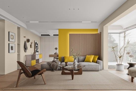 周曉安設(shè)計(jì)作品-立邦·呼吸-奶油色系-客廳 自然質(zhì)感的呼吸色盤(pán)是最近大熱的奶油色系,運(yùn)用于客廳之中,自然而然地釋放著憧憬、希望的力量,空間里充滿了柔和的氣息,它讓身心慢慢舒展,高壓的神經(jīng)在這里得到舒緩和釋放,好像連空間也會(huì)自由呼吸。滿含希望的碎金黃點(diǎn)綴其中,讓現(xiàn)代客廳展現(xiàn)出了欣欣向榮的新生力量。
