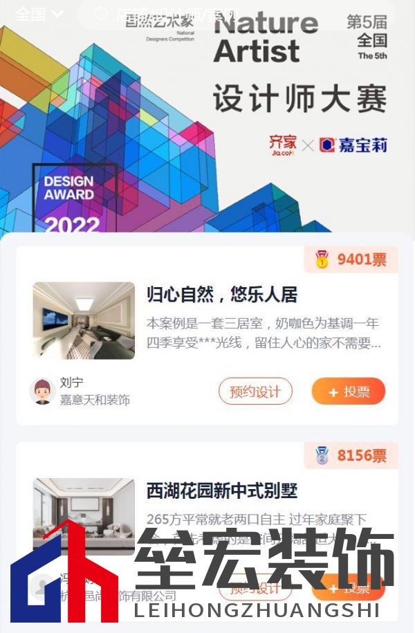 從8月25日啟動作品征集以來,共吸引了數(shù)千名設(shè)計師提交參賽作品,目前收到的作品主要為圖文和視頻兩種形式,在參賽作品當(dāng)中,不少參賽設(shè)計師巧妙的將嘉寶莉藝術(shù)涂料元素融入到作品的整體風(fēng)格當(dāng)中,完美的將家居空間與自然藝術(shù)融合,展現(xiàn)出了設(shè)計作品的藝術(shù)張力。10月21日,第五屆全國設(shè)計師大賽將正式進入全國總決賽環(huán)節(jié),屆時各大區(qū)的參賽選手,將圍繞全國設(shè)計案例金獎、全國視頻案例金獎兩大獎項展開激烈的角逐。 此次大賽邀請了國內(nèi)高端設(shè)計大咖和行業(yè)專家擔(dān)任評委,將從多個維度對參賽作品進行評選,同時也為有需要的設(shè)計提供指導(dǎo)與幫助,提高行業(yè)設(shè)計師面對復(fù)雜挑戰(zhàn)的綜合能力,并為家裝行業(yè)發(fā)掘設(shè)計新星。 什么,裝修還用自己的錢?!齊家裝修分期,超低年利率3.55%起,最高可貸100萬。立即申請享受優(yōu)惠 |