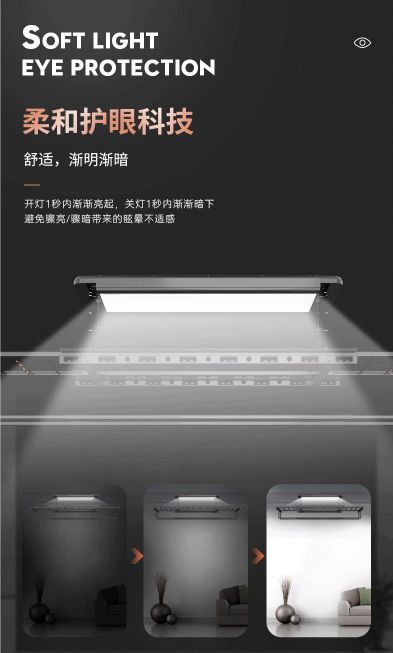 90斤承重,專設(shè)嬰童區(qū) 在有限的體量內(nèi),將承重?zé)o限擴大,是好太太智能晾衣機GW-129又一突出特點,好看不失實用。 2根晾衣桿,2根涼被桿,6根小晾桿,4排母嬰夾,輕松將日常曬衣量翻高到3倍,保證通風(fēng),全家衣物可一起晾曬。最大承重升至90斤,衣被同曬,無遮擋,即便住高層,也能嗅著陽光的味道入睡。與父母一樣重視寶寶健康,專設(shè)嬰童區(qū),為愛打造距離和空間,保護寶寶幼嫩肌膚,給予特別呵護。 智能光感全面屏,照明護眼齊滿足 柔性科技,更能體驗人文關(guān)懷。晾衣機雖是硬邦邦的鋼鐵制物,但科技可以賦予它溫度。好太太GW-129智能晾衣機采用了25W 6500k色溫40英寸智能光感全面屏,它比傳統(tǒng)的陽臺燈更大、更亮。 不過它可不只是靠尺寸取勝的,貼心的護眼模式才是重中之重。1秒內(nèi)漸亮與漸暗,規(guī)避了夜間收晾衣物時驟亮/驟暗帶來的眩暈感,且無需單獨開客廳燈,不影響家人睡眠。同時,模照明亮度可以在APP中自行設(shè)置喜歡的。