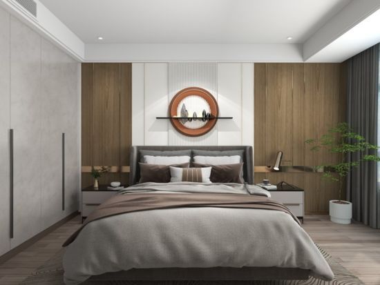 臥室 臥室的設計同樣秉承輕奢風的理念。有著非常個性化設計,特別是奧華·月牙白格柵板和搭配的裝飾畫,最后呈現(xiàn)出的奢華效果,既有視覺享受,又能讓人享受生活,身心都能得到滿足才是最重要的。