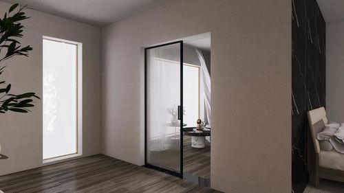 臥室設(shè)有獨立小陽臺,線條勻稱的超白長虹玻璃全景門,巧妙立于臥室與小陽臺之間,宛如雪景畫卷,流暢的線條為室內(nèi)環(huán)境增加了額外的維度,應(yīng)景搭配,賦予空間一室柔情,烘托冬日的氛圍感。 隔形不隔心,家人零距離 冬天居家自由切換空間場景,既能獨享靜謐時光,又可以與家人共享。玉砂玻璃的朦朧質(zhì)感,無需華麗的顏色去渲染,也無需冗雜的元素去堆砌,書房與客廳之間隔而不斷,書房成為辦公、閱讀、談心融于一體的地方。