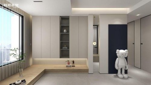 主臥整體以自然灰調(diào)為主,利用光和面營造出簡雅寧靜氛圍。同時,彰顯獨特個性的墻面設(shè)計,造就了百般情感交織。
