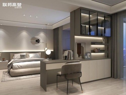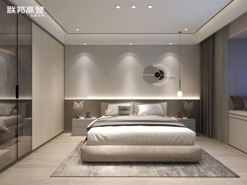 簡約別致又展露心思,拼色護(hù)墻相搭、比例虛實(shí)結(jié)合;通透大方搭配,將現(xiàn)代家的質(zhì)感得以全面體現(xiàn)。 三、臥室全屋定制設(shè)計(jì) 作為全屋設(shè)計(jì)中的私密專屬空間,臥室的設(shè)計(jì)尤其講究自然舒適性,打造出一個靜謐放松之地。與此同時,如果能在功能空間上安排更為巧妙,滿足豐富生活需求,那就更加完美了。