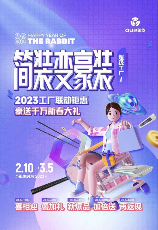 奧華一直以來堅持以用戶為中心,讓消費者花更少的錢,裝更好的家。2月10日-3月5日快來奧華搶購吧,解鎖更多活動豪禮!
