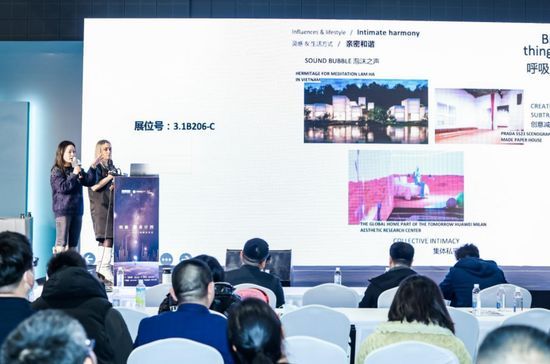 圖|華金證券首席宏觀分析師 秦泰 來自法國趨勢機構(gòu)PECLERS PARIS的趨勢與色彩設(shè)計師Elena PECCHI女士,以2024環(huán)境、材質(zhì)與設(shè)計春夏趨勢分享為題,向品牌傳達了未來的空間設(shè)計色彩潮流和搭配靈感。