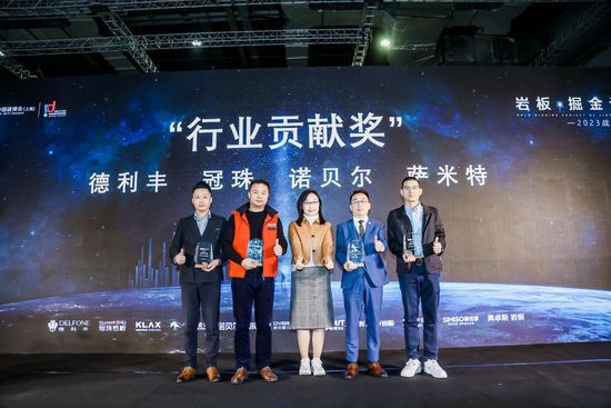 圖|左起:賈恒極、唐豪杰、趙王軻、劉勇、常成 此外,為表彰優(yōu)秀品牌過去一年的突出表現(xiàn)、勉勵新加入品牌共同進步,“巖板·掘金計劃”現(xiàn)場為品牌頒發(fā)了“行業(yè)新銳”“設(shè)計潮流”“行業(yè)貢獻”“巖板綠色消費推薦品牌”四大榮譽獎項。