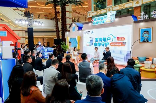 蔡旺庭 契合發(fā)布會主題,旺旺水神現場模擬家居環(huán)境,以新品水神HD-4L消毒機為中心,連接客廳、臥室、廚房、餐廳、衛(wèi)浴等日常環(huán)境,用水神替代自來水使用,演示客廳地面清潔、臥室家紡打理、廚房蔬果清洗、衛(wèi)浴系統除味、全屋降甲醛等,全場景展現水神HD-4L消毒機的家庭應用場景。