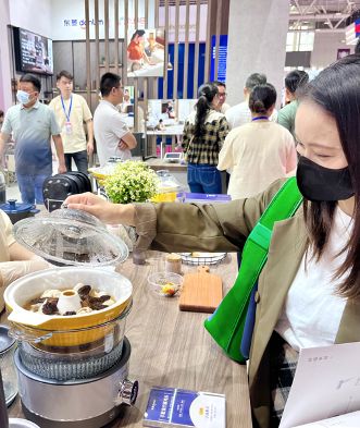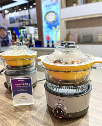 展會期間,東菱邀請了專業(yè)美食達(dá)人現(xiàn)場復(fù)刻汽鍋雞湯。通過蒸汽鍋的“汽鍋模式”,達(dá)人自制兩道夏日時(shí)令靚湯:羊肚菌汽鍋雞湯、鮑魚汽鍋排骨湯。利用蒸汽烹飪,食材無需加一滴水,開放式廚房場景設(shè)計(jì)讓觀眾直觀地看到“蒸汽循環(huán)慢慢凝結(jié)成精華湯汁”的過程。
