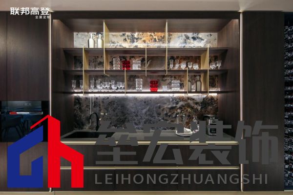 西式簡餐區(qū)從功能與美學(xué)搭配出發(fā),櫥柜采用聯(lián)邦高登全新花色【隱冬】精質(zhì)展現(xiàn),裝飾陳列、備餐一步到位;實(shí)現(xiàn)了多元材質(zhì)的共生并融,原生木皮紋理、玻璃、金屬、亞克力、石材等在柔和燈光渲染下呈現(xiàn)奇妙質(zhì)感。