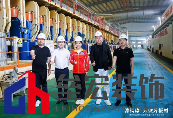 代言人張夢雪在FOSB產(chǎn)品上簽名 為了更加深入了解德科康FOSB,會后張夢雪與德科集團董事長蘇治、副董事長李奇、副董事長郭琳、總經(jīng)理黃加文等一同參觀了德科集團生產(chǎn)基地,感受FOSB的信息化、智能化生產(chǎn)流程,工藝設(shè)備,了解德國迪芬巴赫DIEFFENBACHER干燥、施膠、五層定向鋪裝系列生產(chǎn)系統(tǒng)、加拿大凱登KADANT刨片設(shè)備與意大利CMC篩分系統(tǒng)。張夢雪感慨,5萬平方米的車間,沒看到什么人,好像是機器指揮生產(chǎn),而不是人在指揮生產(chǎn),十分震撼。
