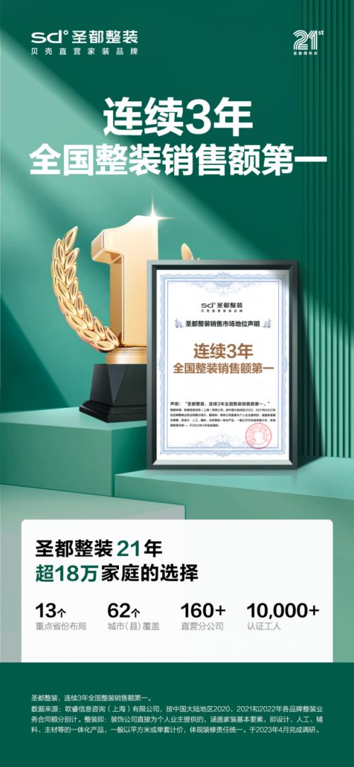 成立于1972年的歐睿國(guó)際是英國(guó)老牌調(diào)研機(jī)構(gòu),擁有自己核心的研究方法,研究訊息在世界范圍內(nèi)具有高度權(quán)威性與專(zhuān)業(yè)性。通過(guò)歐睿國(guó)際對(duì)中國(guó)大陸區(qū)整裝業(yè)務(wù)的數(shù)據(jù)統(tǒng)計(jì)和市場(chǎng)調(diào)研,讓圣都整裝“全國(guó)整裝銷(xiāo)售額第一”的市場(chǎng)地位聲明更具有充分的信服力。 據(jù)了解,“第一”的聲明需要基于其市場(chǎng)份額超過(guò)第二位2.5個(gè)百分點(diǎn),而“領(lǐng)先”指的是行業(yè)里排名前五的企業(yè)、品牌。三次拿下“全國(guó)整裝銷(xiāo)售額第一”的成績(jī)背后,是圣都整裝對(duì)交付品質(zhì)的持續(xù)深耕。 服務(wù)承諾上,針對(duì)家裝市場(chǎng)痛點(diǎn),圣都推出了“客戶(hù)十怕·圣都十諾”的服務(wù)體系,包含“無(wú)惡意增項(xiàng)”“20項(xiàng)質(zhì)量不達(dá)標(biāo)砸無(wú)赦”“2小時(shí)快速響應(yīng),48小時(shí)達(dá)成方案”等等,真承諾、真履約、真公開(kāi),確保圣都的整裝品質(zhì)。 品質(zhì)保障上,圣都擁有萬(wàn)名認(rèn)證工人,以標(biāo)準(zhǔn)化管理打造透明化工地,在傳承魯班工藝精髓的基礎(chǔ)上,創(chuàng)獲62個(gè)實(shí)用新型專(zhuān)利、19個(gè)發(fā)明專(zhuān)利。且設(shè)立獨(dú)立監(jiān)察部門(mén),按照施工標(biāo)準(zhǔn)嚴(yán)格驗(yàn)收把控質(zhì)量,為交付品質(zhì)兜底。 今年3月,圣都整裝啟動(dòng)全國(guó)首屆“透明”工地開(kāi)放周活動(dòng),在全國(guó)50個(gè)城市同時(shí)舉辦,邀請(qǐng)消費(fèi)者親臨工地感受品質(zhì)裝修與交付。圣都整裝以“透明的工地形象”“透明的智慧工地”“透明的施工標(biāo)準(zhǔn)”“透明的驗(yàn)收標(biāo)準(zhǔn)”“透明的兜底服務(wù)”五大維度,通過(guò)可視化、可觸摸的方式,接受客戶(hù)的提前檢驗(yàn),將“安心”植入每一個(gè)裝修細(xì)節(jié)里。下個(gè)月,還將舉行該系列其他活動(dòng)。 可以看到的是,21年來(lái),圣都整裝始終踐行“有尊嚴(yán)的服務(wù)者,更美好的居住”的企業(yè)使命,腳踏實(shí)地、不斷創(chuàng)新,以專(zhuān)業(yè)的設(shè)計(jì)水平、精湛卓越的施工工藝和細(xì)致周到的服務(wù)回饋于行業(yè)和客戶(hù)。未來(lái),圣都整裝將繼續(xù)堅(jiān)持夯基與突破并重的理念,攜手更多行業(yè)伙伴、品牌方,共同打造良性、開(kāi)放、共贏(yíng)的家居品牌生態(tài),為客戶(hù)提供“確定性的品質(zhì)整裝體驗(yàn)”。 責(zé)任編輯:liangchengjun |
