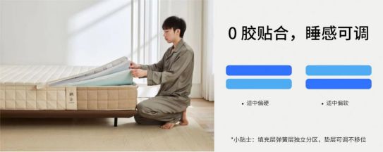 不僅如此,棲作在產(chǎn)品設(shè)計源頭,也堅持將循環(huán)理念融入其中,持續(xù)關(guān)注原材料創(chuàng)新及環(huán)保材料的應(yīng)用?!复髱煛勾矇|正是這一理念的必然產(chǎn)物。 可持續(xù)滿足睡眠需求 「大師」床墊延續(xù)棲作一貫的特點,做了全床可拆卸、墊層可調(diào)節(jié)設(shè)計,可以滿足睡眠者不斷變化的睡眠需求。不論是長時間加班后所需的護(hù)脊睡感,還是休閑玩樂后必要的釋壓睡感,都能在同一張床墊上實現(xiàn),具備極強(qiáng)的靈活性。即便后期睡眠需求發(fā)生變化,僅通過換墊層就能低成本匹配全新睡感,這種睡眠體驗被棲作定義為“陪伴型睡眠”。