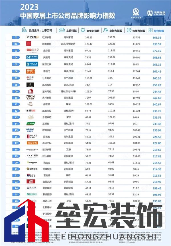 | 5月10日,在第七個(gè)中國(guó)品牌日活動(dòng)期間,中華商標(biāo)協(xié)會(huì)品牌影響力專委會(huì)、世研指數(shù)聯(lián)合發(fā)布了《2023中國(guó)家居品牌影響力指數(shù)報(bào)告》,報(bào)告公布了「2023中國(guó)家居上市公司品牌影響力指數(shù)榜單」。報(bào)告指出,美好生活離不開品質(zhì)家居,家居品牌的發(fā)展與傳播利于消費(fèi)者公開透明地獲取消費(fèi)信息,簡(jiǎn)化購(gòu)買決策過程。報(bào)告從多元角度對(duì)家居領(lǐng)域的標(biāo)桿企業(yè)、行業(yè)板塊、發(fā)展趨勢(shì)進(jìn)行數(shù)據(jù)觀察與分析,公布了家居上市公司品牌影響力指數(shù),以及家居品類、家居消費(fèi)品、家居空間三個(gè)不同視角的互聯(lián)網(wǎng)成交力指數(shù)。 中華商標(biāo)協(xié)會(huì)會(huì)長(zhǎng)馬夫表示,品牌是生產(chǎn)者和消費(fèi)者共同的追求,是供給側(cè)和需求側(cè)升級(jí)的方向,是高質(zhì)量發(fā)展的重要象征。品牌影響力決定著一個(gè)國(guó)家在全球產(chǎn)業(yè)價(jià)值鏈中的地位。中華商標(biāo)協(xié)會(huì)品牌影響力專委會(huì)推動(dòng)《中國(guó)品牌影響力指數(shù)研究計(jì)劃》實(shí)施的一年多來,逐步探索出一套以影響力指數(shù)方式呈現(xiàn)的品牌評(píng)價(jià)體系,通過面向社會(huì)公布各消費(fèi)領(lǐng)域的指數(shù)研究報(bào)告,不斷激發(fā)品牌的創(chuàng)新力量,滿足中國(guó)消費(fèi)者高品質(zhì)新生活的追求,為品牌進(jìn)入國(guó)際市場(chǎng)賦能。 「2023中國(guó)家居上市公司品牌影響力指數(shù)」是以中國(guó)家居領(lǐng)域的上市公司為品牌主體,評(píng)估其在中國(guó)消費(fèi)者群體中的心智認(rèn)知、價(jià)值認(rèn)同的綜合指數(shù)模型,由競(jìng)爭(zhēng)力指數(shù)、心智力指數(shù)和傳播力指數(shù)構(gòu)成。報(bào)告中披露了30家標(biāo)桿品牌,包括:歐派家居、顧家家居、索菲亞、美凱龍、居然之家、喜臨門、公牛集團(tuán)、慕思股份、東方雨虹、志邦家居、金螳螂、東鵬控股、水星家紡、三棵樹、歐普照明、好萊客、尚品宅配、箭牌家居、我樂家居、兔寶寶、金牌廚柜、富安娜、曲美家居、美克家居、蒙娜麗莎、惠達(dá)衛(wèi)浴、北新建材、夢(mèng)潔股份、大亞圣象、東易日盛。 上市公司的經(jīng)營(yíng)業(yè)務(wù)中涉及廣義家居概念的企業(yè)眾多,且主營(yíng)業(yè)務(wù)在不斷擴(kuò)張、跨界、整合中快速變化,報(bào)告對(duì)數(shù)百家業(yè)務(wù)涉及定制家居、家具、賣場(chǎng)、建材、家紡、衛(wèi)浴、電氣照明等業(yè)務(wù)的公司進(jìn)行數(shù)據(jù)監(jiān)測(cè)。家電領(lǐng)域因規(guī)模體量大且相對(duì)獨(dú)立,在本次指數(shù)評(píng)估中未一并納入,預(yù)計(jì)在未來的系列報(bào)告中進(jìn)行專項(xiàng)研究。