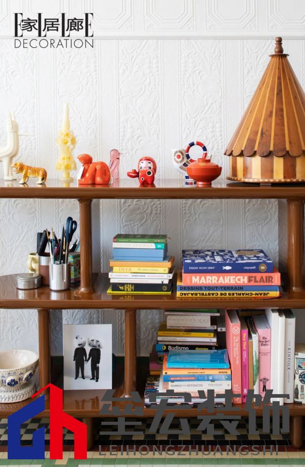 定制木架上都是主人的私藏。中間的藍(lán)色大開本《Jaime?Hayón?Works》由Gestalten出版。