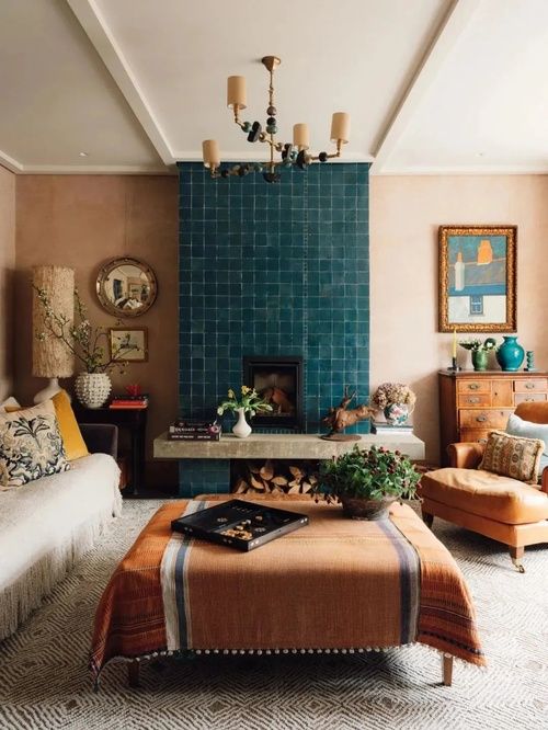 01° 局部改造 注入設(shè)計師的風格屬性 Katie?對屋內(nèi)所有的原始特色和材料都保留了下來,但這個1930年的壁爐是個例外,她采用深藍色琉璃瓦對壁爐進行了重新包裹,不僅為房間增添了質(zhì)感,也成了房間的一大亮點,讓人只看一眼就情不自禁地被它吸引。 ? 廚房臺面和水槽是定制的一體成型的水磨石。黃銅把手的點綴,與地板的顏色遙相呼應(yīng)。木質(zhì)百葉窗柜門和吊柜讓內(nèi)里通風透氣,更加環(huán)保健康。樓梯下狹小的凹室里放置了一張小小的工作臺,雖然面積不大,但上下分層,更有效地利用了空間。 ?