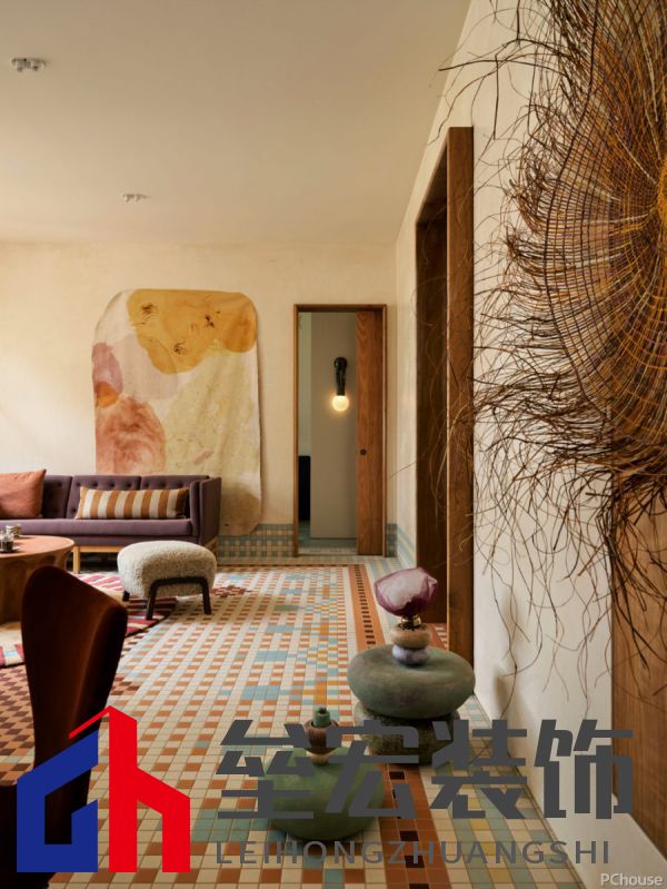 主臥室內(nèi),手工刺繡的床旗是設(shè)計(jì)師?Louis?Barthélemy?的定制作品,靈感來源于埃及神話,帶有一種俏皮的象征意義。房間內(nèi)的家具具有懸浮的特質(zhì),定制木質(zhì)控制臺(tái)輕輕懸浮在空中,增添了空間的輕盈感。燈具的選擇也是設(shè)計(jì)中的重要元素,串珠壁燈為臥室增添了一抹神秘與異國(guó)風(fēng)情。衛(wèi)生間極具現(xiàn)代感且富有文化內(nèi)涵。土耳其浴室風(fēng)格的瓷磚裝飾為空間增添了異國(guó)情調(diào),而模塊化的石盆則以簡(jiǎn)潔的形式漂浮在櫥柜上方,增強(qiáng)了空間的流線感。主浴室的凹槽石榴石吊燈為房間增添了一抹奢華,結(jié)合了維多利亞時(shí)代的細(xì)節(jié)與中東風(fēng)格的元素。 庭院設(shè)計(jì)打開了視線通道,使得從入口到花園的空間變得通透。庭院內(nèi)的瓷磚圖案延續(xù)了室內(nèi)的幾何主題,并以像素化的地板設(shè)計(jì)為主,將室內(nèi)與戶外無縫連接。 |