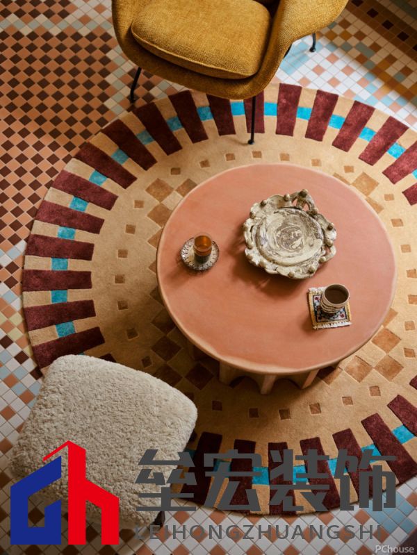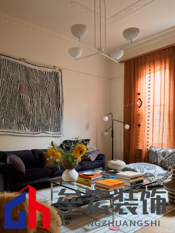 夏季客廳為了增強(qiáng)對(duì)比,設(shè)計(jì)師選擇了姜黃色的窗簾,并在地毯上引入了抽象幾何圖案,與整個(gè)住宅的設(shè)計(jì)語言一致。