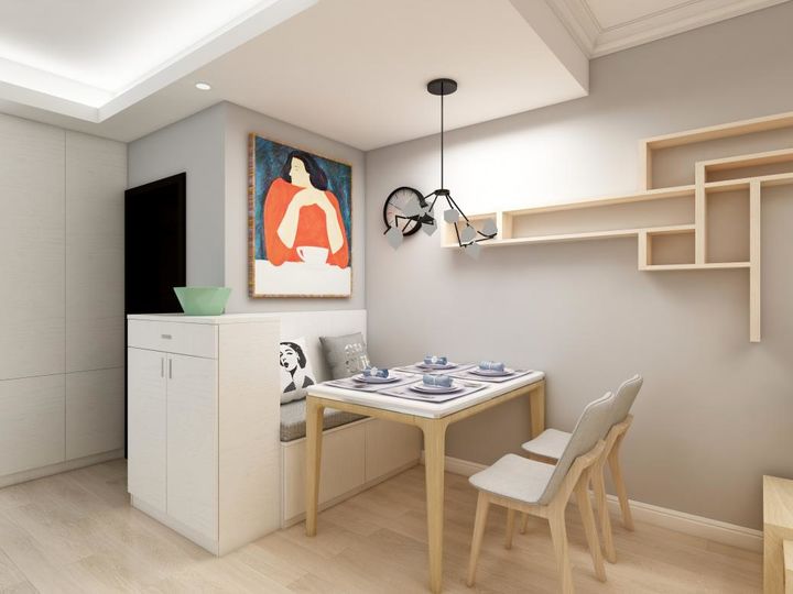 從家具上來(lái)說(shuō),日式家具相對(duì)低矮,不論沙發(fā)或是床,因?yàn)榈椭匦牡募揖邥?huì)讓空間顯得通透開(kāi)闊,這也是為什么小戶(hù)型會(huì)推薦日式風(fēng),而北歐風(fēng)家具相對(duì)高挑。從色彩上來(lái)說(shuō),日式風(fēng)的配色比較柔和,以淺色系為主,而北歐風(fēng)的配色飽會(huì)比較高,會(huì)有十分亮眼的顏色,所以日式風(fēng)和北歐風(fēng)還是有很大的差別的。 原木地板,白色墻面,干凈,簡(jiǎn)潔,木格增加了線(xiàn)條感,讓空間得到舒緩,使得原有的空間更加精致。餐桌上簡(jiǎn)約實(shí)用的餐具,背景墻上是色彩明亮的抽象人物裝飾畫(huà),布置在這個(gè)簡(jiǎn)約風(fēng)的空間下,顯得格外的自然舒適而優(yōu)雅大氣。 在傳統(tǒng)和室中,日本人會(huì)在榻榻米上席地而坐,這種文化同樣也保留至今。榻榻米很適合用于次臥,作為小戶(hù)型的多功能空間,榻榻米可是兼具儲(chǔ)物、客臥、茶室、娛樂(lè)各種功能于一身,簡(jiǎn)簡(jiǎn)單單又溫暖柔軟。 3、北歐風(fēng)
