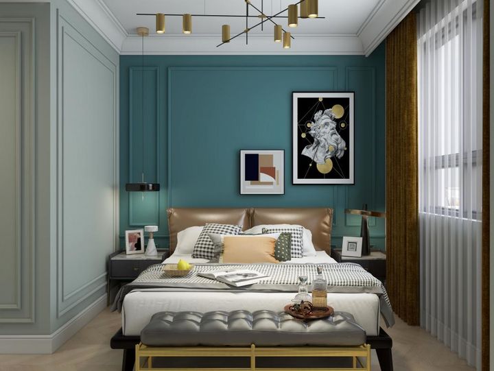 法式混搭風(fēng)的魅力就在于多了幾分品質(zhì)和設(shè)計(jì)感,透露生活本真純粹的同時(shí),又融入了奢華和內(nèi)涵的氣質(zhì)。這套案例中,臥室裝修在色彩上運(yùn)用金屬色與亮色相互碰撞,形成色彩上的對(duì)比,為居室呈現(xiàn)出一種溫馨大氣、時(shí)尚浪漫的格局。