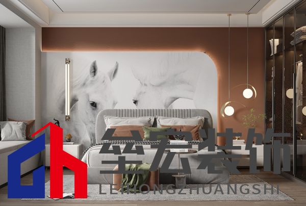 ??或如馳騁的駿馬,整體色調(diào)以白色為主,畫面中兩匹白色的駿馬,象征純潔和高貴,駿馬有乘風(fēng)破浪,縱橫馳騁的美好寓意,巧妙的明暗色彩運用賦予空間超凡脫俗的藝術(shù)格調(diào)。