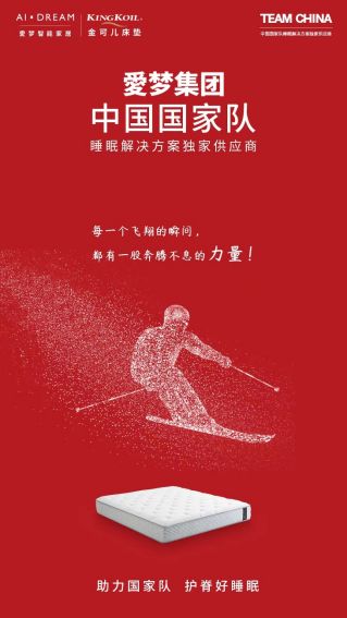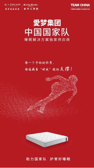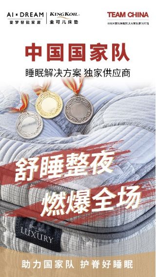 ??金可兒品牌所屬愛夢集團,是TEAM CHINA中國國家隊睡眠解決方案供應商。金可兒護脊好睡眠,助力中國國家隊出征!與此同時,金可兒提醒您:賽事很精彩,觀賽注意勞逸結合,享受歡聚團圓美好時光。