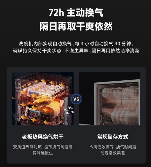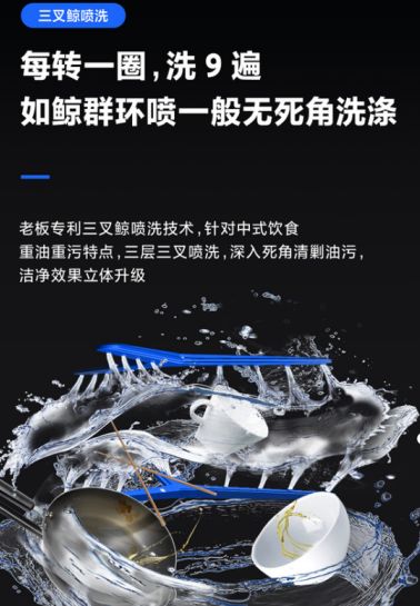 老板WB795X洗碗機采用了老板電器專利的三叉鯨噴式噴洗技術(shù),噴淋方向更為全面;針對中式烹飪重油重污的特點,通過三層三叉立體噴洗,能夠無死角地對洗碗機內(nèi)的各種餐具進(jìn)行深度清洗。中式廚具中,鍋具的清理往往是最讓人痛苦的,不但充斥著大量的頑固油漬,還經(jīng)常有干涸的食材粘黏在鍋里,即便是用手清洗,也依舊非常麻煩,老板WB795X洗碗機作為能洗鍋的洗碗機,通過其搭載的BLDC變頻電機能提供40000pa的高壓熱水,能夠快速溶解頑固殘渣,可對包括蒸鍋、炒鍋、電飯煲內(nèi)膽在內(nèi)的多達(dá)三口鍋具進(jìn)行沖洗,同時72°高溫的煮洗也能確保對餐具內(nèi)常見的多種細(xì)菌進(jìn)行消殺,除菌率可高達(dá)99.99%,相當(dāng)于國家二星級消毒柜的效果,不僅能夠洗得干凈,還可以消的徹底。 很多家庭,雖然手洗餐具時洗得非常仔細(xì),卻沒有對餐具進(jìn)行擦拭的習(xí)慣,導(dǎo)致細(xì)菌通過殘留水跡再次附著,針對這一現(xiàn)象,老板WB795X洗碗機集烘干存放于一身,通過雙循環(huán)熱風(fēng)對機體內(nèi)部進(jìn)行快速烘干,確保餐具在清洗后迅速恢復(fù)干燥狀態(tài),避免細(xì)菌二次滋生,同時老板WB795X洗碗機能夠一次清洗并收納多達(dá)95套餐具,且具有每3小時自動換氣半小時的功能,鮮存聯(lián)動,讓收納的餐具能夠及時通風(fēng),既避免了冷氣凝結(jié)沾染細(xì)菌,又能有效消除異味,讓廚房餐具即取即用,給消費者的用餐健康做好最后一道防護(hù)。而且老板洗碗機尺寸也是比較符合我們對于節(jié)省空間的理念的。