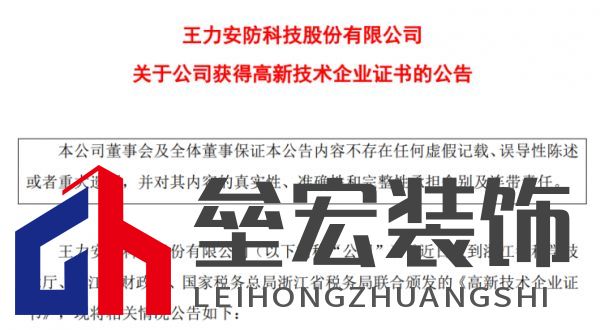| 高新技術(shù)企業(yè)是在國家重點支持的高新技術(shù)領域內(nèi),持續(xù)進行研究開發(fā)與技術(shù)成果轉(zhuǎn)化,形成企業(yè)核心自主知識產(chǎn)權(quán),并以此為基礎開展生產(chǎn)經(jīng)營活動的企業(yè)的認定。獲得高新技術(shù)企業(yè)認定是對一個企業(yè)科技成果和研發(fā)、創(chuàng)新能力的一種肯定,更將獲得國家的大力扶持,得到撥款、減稅、低息貸款等一系列的政策傾斜,對于上市企業(yè)來說絕對是一個重大利好。 2022年伊始,在家居圈便有5家上市相機發(fā)出公告,公布獲得其母公司或全資子公司獲得高新技術(shù)企業(yè)認定。 一、王力安防: 2月11日,王力安防發(fā)布《關于公司獲得高新技術(shù)企業(yè)證書的公告》。