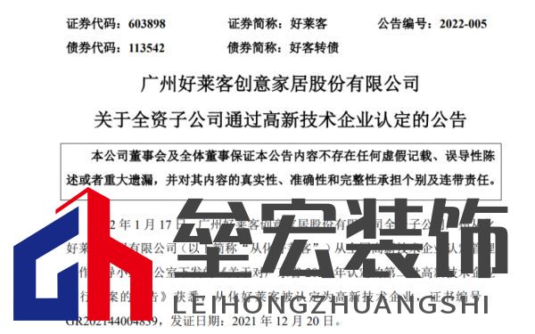 《高新技術(shù)企業(yè)證書》基本情況: 1、證書編號::GR202133004744 2、發(fā)證日期:2021年12月16日 3、有效期:3年 對公司的影響: 根據(jù)《中華人民共和國企業(yè)所得稅法》及國家對高新技術(shù)企業(yè)的相關規(guī)定,花木匠公司自通過高新技術(shù)企業(yè)認定起連續(xù)三年(2021年至2023年)可享受國家關于高新技術(shù)企業(yè)的稅收優(yōu)惠政策,即按15%的稅率繳納企業(yè)所得稅。 五:好萊客:全資子公司廣州從化好萊客家居有限公司