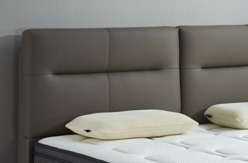 東寶床墊這款皮床外觀清新,造型簡潔,在現(xiàn)代臥室中讓人眼前一亮。八個金屬高床腳,擁有12公分的床底高度,簡潔中帶有一分輕奢感。 它的靈感來源于極簡理念,沒有鮮艷的色彩,沒有繁雜的線條裝飾,柔和的莫蘭迪灰,給人一種安靜、清新的空間氛圍。