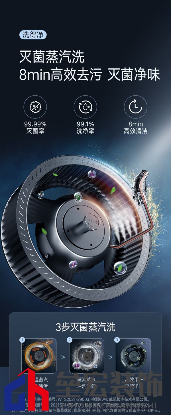 這一臺美的頂側(cè)雙吸集成灶LS5通過用戶手勢智控,體感操作,帶來了這種隨心掌控的科技感。舉手之間,風(fēng)量隨心,用智控凈煙,告別煙霧繚繞;揮手智控,化繁為簡,用輕松手勢,告別繁瑣按鍵。借助于揮手體驗,用戶可有效防止指間水漬和油污浸染面板,還原面板潔凈無痕。 因此揮一揮,揮走的不僅是油煙,更是復(fù)雜枯燥的烹飪生活。而帶來的,則是美的集成灶懂生活更懂你的智慧體驗。 第四招:八分鐘滅菌凈味的清潔體驗 占據(jù)廚房C位的集成灶,在用凈煙保證全家健康的同時,又該如何保持自身內(nèi)部清潔,避免出現(xiàn)將干凈獻(xiàn)給廚房,而將油污留給自己的情形?答案是定期清洗。 為此,常見的清洗方案有請專業(yè)師傅上門清潔和自主清潔。前者每次清洗成本估算約300元。如果按每年清洗兩次來算,8年清洗費(fèi)用就要4800元,太費(fèi)錢。后者雖然省錢,但是自主拆洗,很容易因為不熟悉內(nèi)部結(jié)構(gòu),導(dǎo)致拆得下,裝不上,還會弄臟廚房,零件滿地,實則費(fèi)時費(fèi)力。