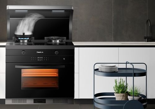 其次,凱度的集成灶用微晶陶瓷板代替了內(nèi)腔底部的蒸發(fā)盤,進一步優(yōu)化了烹飪效率和使用體驗,并從產(chǎn)品設計上實現(xiàn)了行業(yè)引領。微晶陶瓷板是一種近兩年十分流行的高新技術材料,因其具有熱導率高、不受污染、易于清潔、抗沖擊、耐磨與耐腐蝕等優(yōu)良特性,而倍受手機廠商的偏愛。凱度將這種高端材料應用于集成灶內(nèi)嵌的蒸烤一體機或微蒸烤一體機中,不僅可以在用戶烤制食物時更快速、更均勻地傳導熱量,還能免去傳統(tǒng)蒸發(fā)盤大量積水的困擾,其光潔平整的一體化面板能一抹即凈,幫助用戶省心省力。 在使用頻率頗高的煙灶方面,凱度的蒸烤集成灶同樣出色:油煙機部分19m3/min超強風量與最大靜壓≥400Pa的超強風壓相結(jié)合,再加上集成灶本身低吸的優(yōu)勢,能夠瞬間凈排油煙,防止油煙上臉;三防全塑封高轉(zhuǎn)速風機+低噪風箱,確保用戶在享受廚房生活的同時不會被強噪音侵擾,感受更舒適;灶具部分擁有完美的5.0kw聚焰真猛火,遠高于同類產(chǎn)品4.2-4.5kw的大火力,充分滿足了中國家庭大火爆炒的需求,且為1級能效,綠色節(jié)能;在安全方面,灶具熄火自動保護設計可高效杜絕風險隱患,讓用戶的每一次使用都更放心;煙灶之間還配備了代表廚電發(fā)展趨勢的智能聯(lián)動功能,用戶打開灶具,煙機隨即自動開啟,為用戶省去了很多繁瑣的操作,讓烹飪不再手忙腳亂。