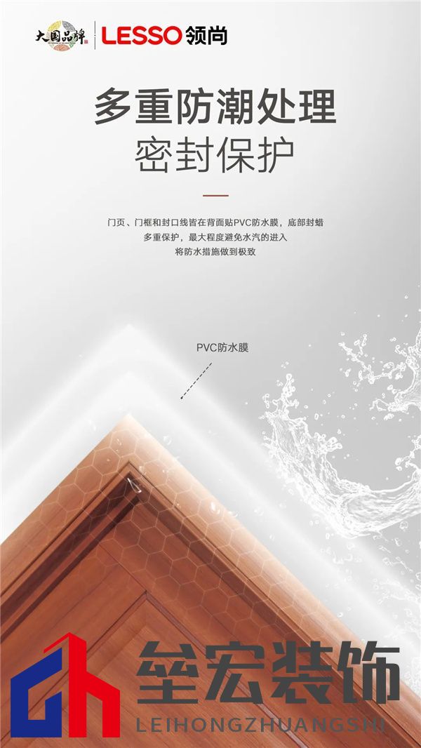 ??背面防護很重要 ??在挑選的時候一定要對背面細節(jié)關(guān)注,防止靠墻面以及當(dāng)空氣中的水汽凝結(jié)成水珠在木門上滑落時的濕氣入侵(想想自己每次洗澡后的木門)。領(lǐng)尚木門門頁、門框和封口線,皆在背面貼PVC防水膜,有效防止空氣中的水分侵入板材內(nèi)部,讓防潮效果更進一步。
