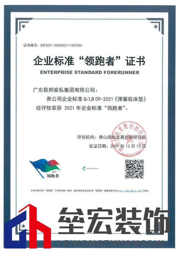 ??這是自2019年企業(yè)標(biāo)準(zhǔn)“領(lǐng)跑者”榜單首次發(fā)布以來,聯(lián)邦家私再次榮獲該項(xiàng)榮譽(yù)。入圍企業(yè)標(biāo)準(zhǔn)“領(lǐng)跑者”,彰顯聯(lián)邦家私彈簧軟床墊技術(shù)在行業(yè)內(nèi)的先進(jìn)性、創(chuàng)新性和引領(lǐng)性,有助于通過標(biāo)準(zhǔn)推進(jìn)企業(yè)和行業(yè)的技術(shù)革新和高質(zhì)量發(fā)展。