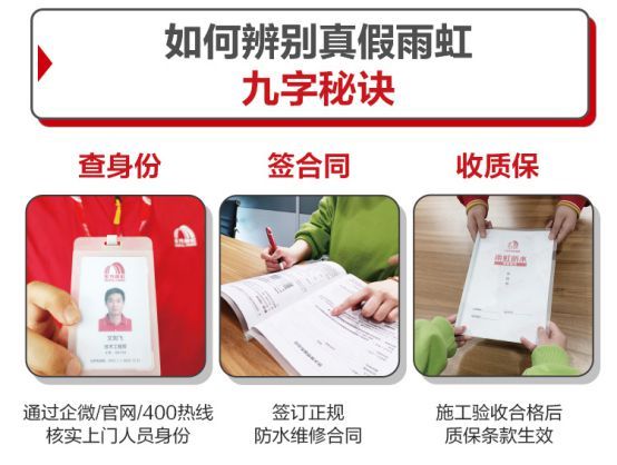 專業(yè)服務(wù)+保障 四大承諾打造差異化優(yōu)勢(shì) “房屋漏水,就找雨虹防水維修!”,經(jīng)過(guò)20多年的市場(chǎng)教育,東方雨虹在防水領(lǐng)域的專業(yè)性已是眾人皆知。從地面到墻面,從衛(wèi)生間到廚房,東方雨虹在防水維修的產(chǎn)品、技術(shù)、服務(wù)上沉淀了豐富的經(jīng)驗(yàn)。 而在專業(yè)性之外,東方雨虹還向消費(fèi)者提供了全方位保障。耿剛告訴我們,東方雨虹防水維修服務(wù)承諾“材料保國(guó)標(biāo) 工匠嚴(yán)篩選 價(jià)格全透明 單單有質(zhì)?!?。
