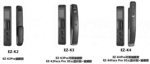 此外,EZ-K系列所有產(chǎn)品均自帶140°高清廣角攝像頭 ,內(nèi)置貓眼,3.5寸高清顯示屏 180天超長續(xù)航。C級全銅鎖芯應(yīng)急開鎖,后鎖應(yīng)急把手快開,電機旋鈕手動快開。 EZ-K系列的高階款產(chǎn)品——K3與K4的FacePro3D人臉識別+貓眼款,主要增加了3D人臉開門的解鎖方式,識別速度快、低功耗,有著業(yè)界公認(rèn)的安全性和良好的用戶體驗。