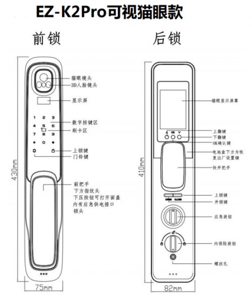 EZ-K系列共有三種型號,K2是貓眼款,K3跟K4有貓眼款跟3D人臉識別款兩種。其中我入手的是EZ-K2Pro貓眼款,這款也是該系列的代表產(chǎn)品,擁有開門解鎖方式七合一(指紋+密碼+刷卡+雙重認(rèn)證模式+機械鑰匙+微信小程序(限時密碼)+微信公眾號遠(yuǎn)程請求開鎖),多樣化的開鎖方式設(shè)計讓用戶可以根據(jù)自己的需求制定解鎖方案,指紋頭同樣根據(jù)用戶習(xí)慣進行設(shè)計,達(dá)到一握即開的效果。