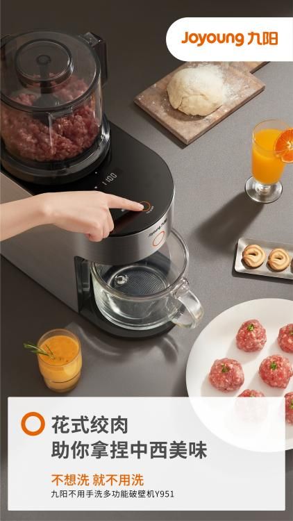 ??九陽這款破壁機(jī)的功能十分強(qiáng)大,它有三個(gè)配件,除了可以做常規(guī)冷熱飲、磨干粉以外,想吃餃子的時(shí)候也可以用它來絞肉、和面,想做蛋糕的時(shí)候可以用它來打發(fā)蛋清和奶油,想喝水果原汁還可以換上原汁機(jī)的配件,當(dāng)個(gè)原汁機(jī)用!不同的功能對應(yīng)不同的轉(zhuǎn)速,不論是做肉丸面條,還是餅干果汁,超多的功能滿足你的所有需求,讓你輕松開啟中西跨界料理! ??懸掛降噪技術(shù) 帶來更舒適的體驗(yàn)感 ??不僅烹飪了得,九陽不用手洗多功能破壁機(jī)Y951在使用細(xì)節(jié)上也是毫不含糊。針對破壁機(jī)噪音問題,不用手洗多功能破壁機(jī)Y951采用了懸掛降噪技術(shù),從上到下從里到外都有降噪的設(shè)計(jì),電機(jī)外面有隔音罩減少電機(jī)噪音,內(nèi)外軟連接減少摩擦噪音,螺旋散熱風(fēng)道減少散熱噪音,全方位立體降噪,連硅膠都是汽車使用的降噪配件,減少腔體內(nèi)噪音。這一套降噪技術(shù)下來,不用擔(dān)心給周邊環(huán)境帶來困擾,為用戶提供更舒適的體驗(yàn)感!