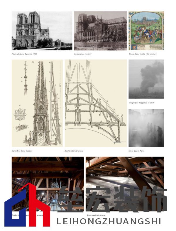 ROOF of MIST 大教堂的尖頂在歷史上被視為虔誠(chéng)的象征,但也代表著贊助人的財(cái)富。面對(duì)為巴黎圣母院重新設(shè)計(jì)毀壞屋頂?shù)奶魬?zhàn),我們想設(shè)計(jì)一個(gè)代表人民的屋頂。 我們沒(méi)有給屋頂一個(gè)確定的形狀,而是提出了一個(gè)由代表集體意向的薄霧制成的屋頂。屋頂由三個(gè)部分組成:一個(gè)高壓噴嘴系統(tǒng)、一系列由燒木制成的三角形框架,以及地板為玻璃的鋼吊橋。噴嘴系統(tǒng)具有防火和社交參與裝置的雙重功能。它與城市的投票系統(tǒng)相連,將根據(jù)市民的反應(yīng)調(diào)節(jié)不同區(qū)域的彈射壓力。投票系統(tǒng)將通過(guò)應(yīng)用程序和互聯(lián)網(wǎng)平臺(tái)運(yùn)行。霧的覆蓋范圍和密度會(huì)隨著人類(lèi)的參與而改變。不僅是虔誠(chéng)的象征,我們希望新屋頂也能成為鼓勵(lì)人們參與社會(huì)的象征。 雖然這座重要紀(jì)念碑的屋頂在火災(zāi)中被毀是一個(gè)巨大的損失,但我們希望將其視為大教堂積極發(fā)展的機(jī)會(huì);因此,這場(chǎng)火災(zāi)不應(yīng)是城市失憶癥。對(duì)于屋頂上的原始木材結(jié)構(gòu)“森林”,木框架按照原始圖案鋪設(shè),但升華成更好的耐候材料燒焦的雪松,以紀(jì)念火災(zāi)事件。為重建大教堂做出貢獻(xiàn)的人的名字將被刻在木頭上。三角形的框架將支撐一座吊橋,讓人們可以體驗(yàn)和穿過(guò)霧蒙蒙的屋頂。玻璃地板還將展示哥特式教堂原有的石質(zhì)拱形天花板,讓人們更多地了解建筑之美。