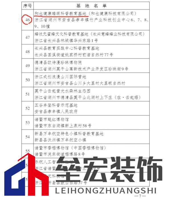 | 好消息!好消息! 和也健康睡眠科普教育基地 入選“浙江省科普教育基地”啦! 近日,浙江省科協(xié)公布了 第八批“浙江省科普教育基地”名單, 安吉縣共有三家單位榮獲此稱號(hào), 和也健康睡眠科普教育基地成功入選!